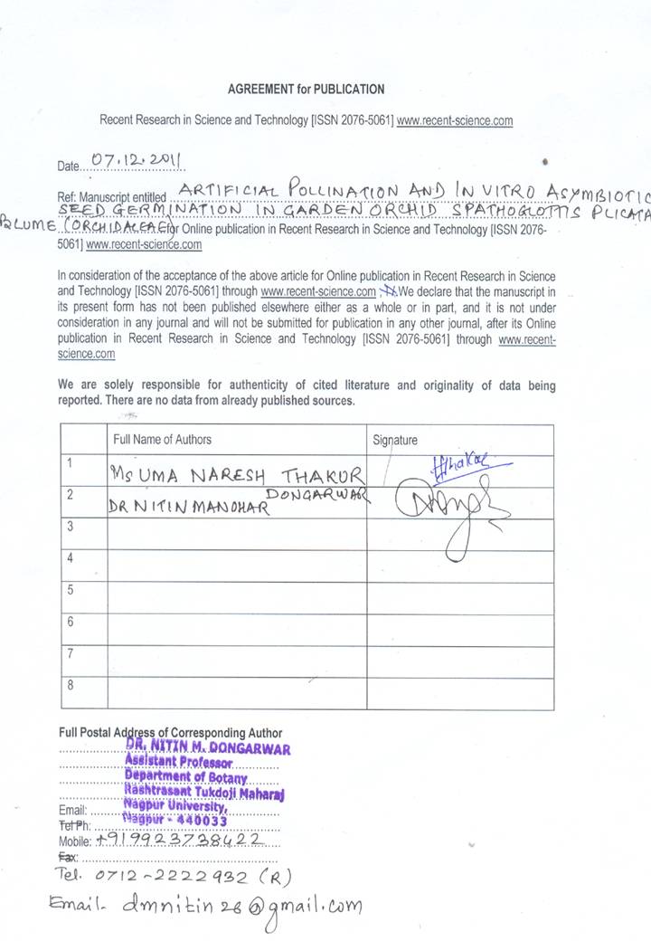 Spathoglottis plicata, artificial pollination, asymbiotic germination, green house acclimatization.Abstract